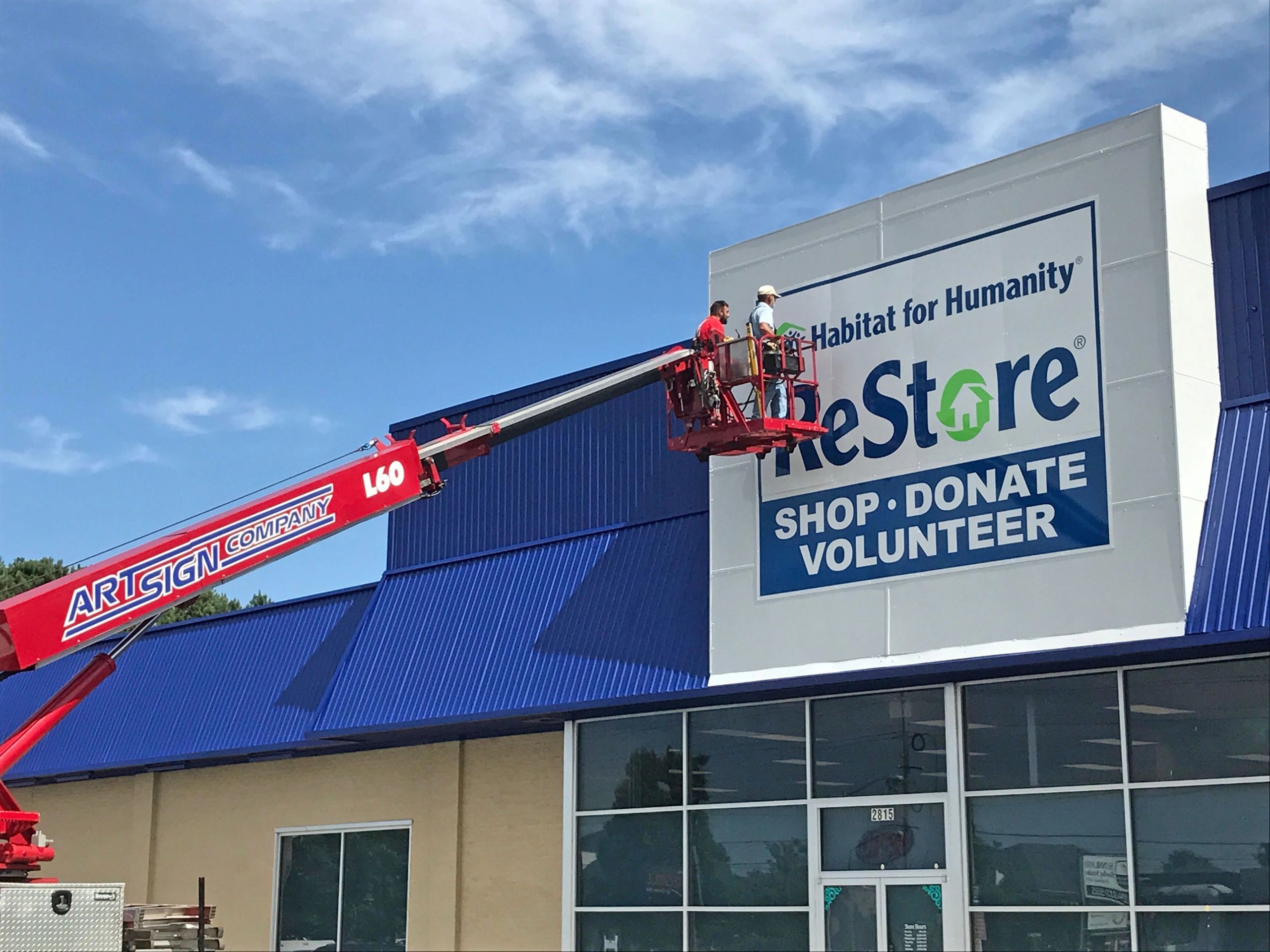 If you would like to donate your gently used items to our ReStore, drop offs are accepted at our donation bay on the left side of the building. If you need a free pick up, cal